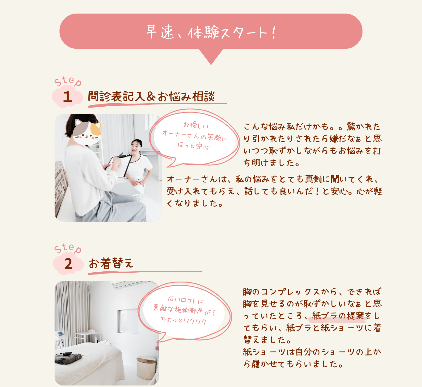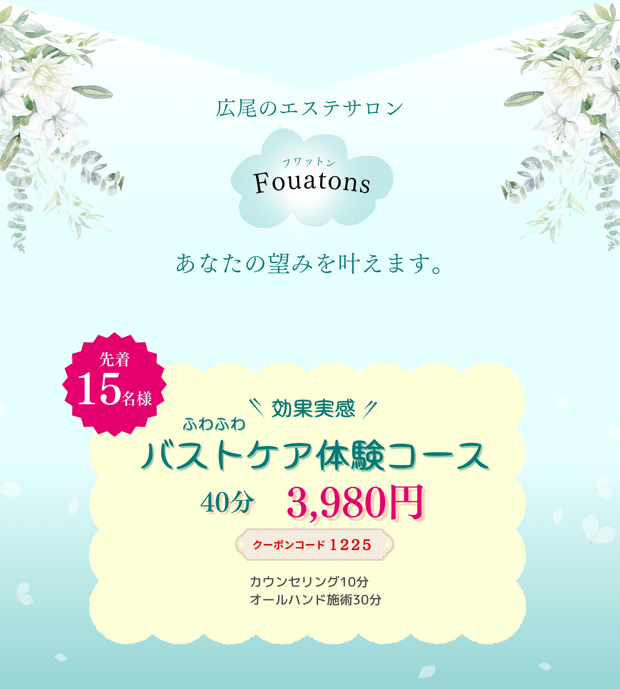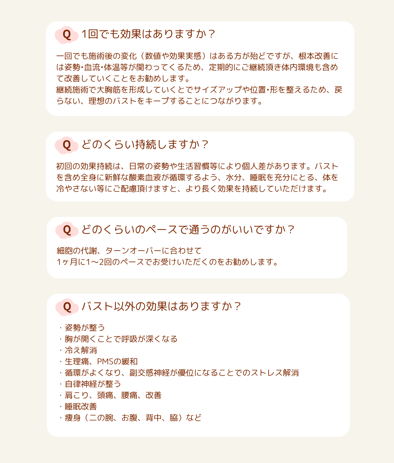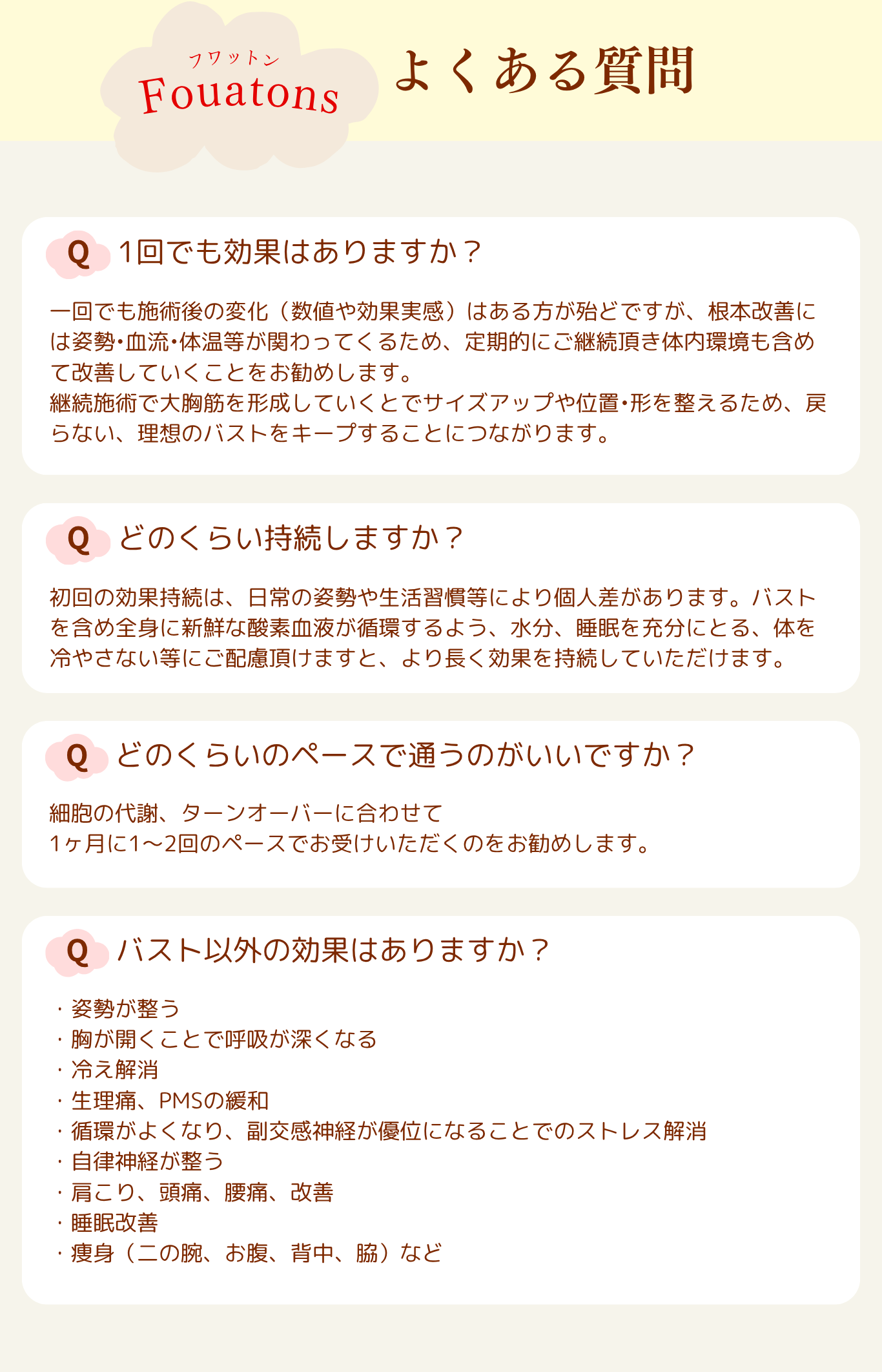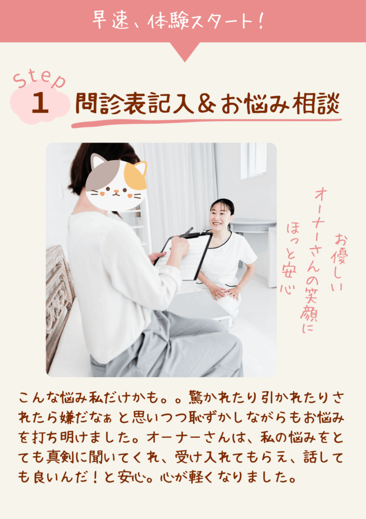 なむ2025-05-29Trustindex は、レビューの元のソースが Google であることを確認します。 初めて伺いましたが、担当の方の対応がとても優しく、緊張もすぐほぐれました。 フットバスやマッサージもずっと気持ち良くてかなり癒されました。 バストアップのコースだったので 下着のつけ方なども教わることができ、 勉強になりました。 本日はありがとうございました! Yuki F2025-04-28Trustindex は、レビューの元のソースが Google であることを確認します。 お店に入った瞬間から癒しが始まります。 オーナーの柔らかい笑顔、迎え入れる気配り、そしてお部屋の心地よさ。 施術が始まると、細胞まで届くかの如く丁寧に接してくださる。 全てが期待以上でした。 体が喜ぶのはもちろんのこと、心までほぐれて最高な時間を過ごす事ができました。 次の予約を思うだけでワクワクします。 新しい楽しみが増えました。 本当にプレシャスな時間をありがとうございました。 E I2025-04-27Trustindex は、レビューの元のソースが Google であることを確認します。 とてもリラックスできる空間で、日々の疲れが取れました!!とても丁寧で全ての施術が気持ちよかったです。 Ayako Matsushima2025-04-25Trustindex は、レビューの元のソースが Google であることを確認します。 先日、はじめてオーナーセラピストの京子さんの施術を受けさせていただき、大変感動しました。もちっとして柔らかい、温かな手からの癒しのパワーがとても素晴らしく、すっかり心身共に軽くなり浄化されました。今まで色々なエステを受けさせていただきましたが、ミシュラン級です。フェイスもきゅっと引き上げられ、若かりし頃の柔らかい肌を思い出しました。また、自分へのご褒美に伺いたいと思っております。 さくら2025-04-24Trustindex は、レビューの元のソースが Google であることを確認します。 こちらのお店に入るまで正直不安がありましたが、ここの営業の方はお客側の立場になって親身に話を聞いて下さり、安心して迅速丁寧な対応を常にして下さりました 120分コースで脚のマッサージオプションで アロマの香りと丁寧なマッサージで心身ともに癒されました☘️ 力加減の適切さもバッチリです。 痛気持ちいい部分をがっつり揉んでもらい、ゴリゴリがなくなっていくのが心地よかったです 心も身体が軽くなってポカポカしてウトウトしてました〜 お腹も肩も全身もスッキリです☺️✨ 居心地がいいサロンでした✨ ありがとうございました☺️ rika ogr2025-04-16Trustindex は、レビューの元のソースが Google であることを確認します。 夏が近づいてきたので、バストアップで検索して伺いました。施術の内容も充実していて、話しやすいエステティシャンの方で安心して悩みを相談することができました。 コンプレックスを解消するために、継続して通いたいと思います! mariko miyazaki2025-04-14Trustindex は、レビューの元のソースが Google であることを確認します。 初めてのケアだったので緊張していましたが、とっても親切でお店の空間も素敵でした。自分のご褒美にまた是非行きたいです! junko hotta2025-04-13Trustindex は、レビューの元のソースが Google であることを確認します。 プライベートな空間でとっても癒されました。綺麗な部屋で素敵な時間を過ごすことができました。自分へのご褒美の癒しに定期的に通いたいと思います。 入澤郁2025-04-13Trustindex は、レビューの元のソースが Google であることを確認します。 ホスピタリティがとてもよかったです。良いリフレッシュになりました! midori sasaki2025-04-11Trustindex は、レビューの元のソースが Google であることを確認します。 白を基調とした清潔感あるお部屋で施術をうけました。 スタッフさんはとても優しくマッサージの強さや温かさもちょうど良かったです。 リラックスできるアロマの匂いでとても癒されました。 また来たいと思います。